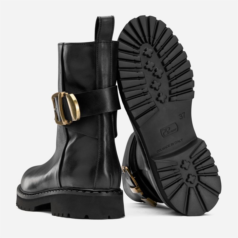 Leather Belt with Buckle Black/Gold