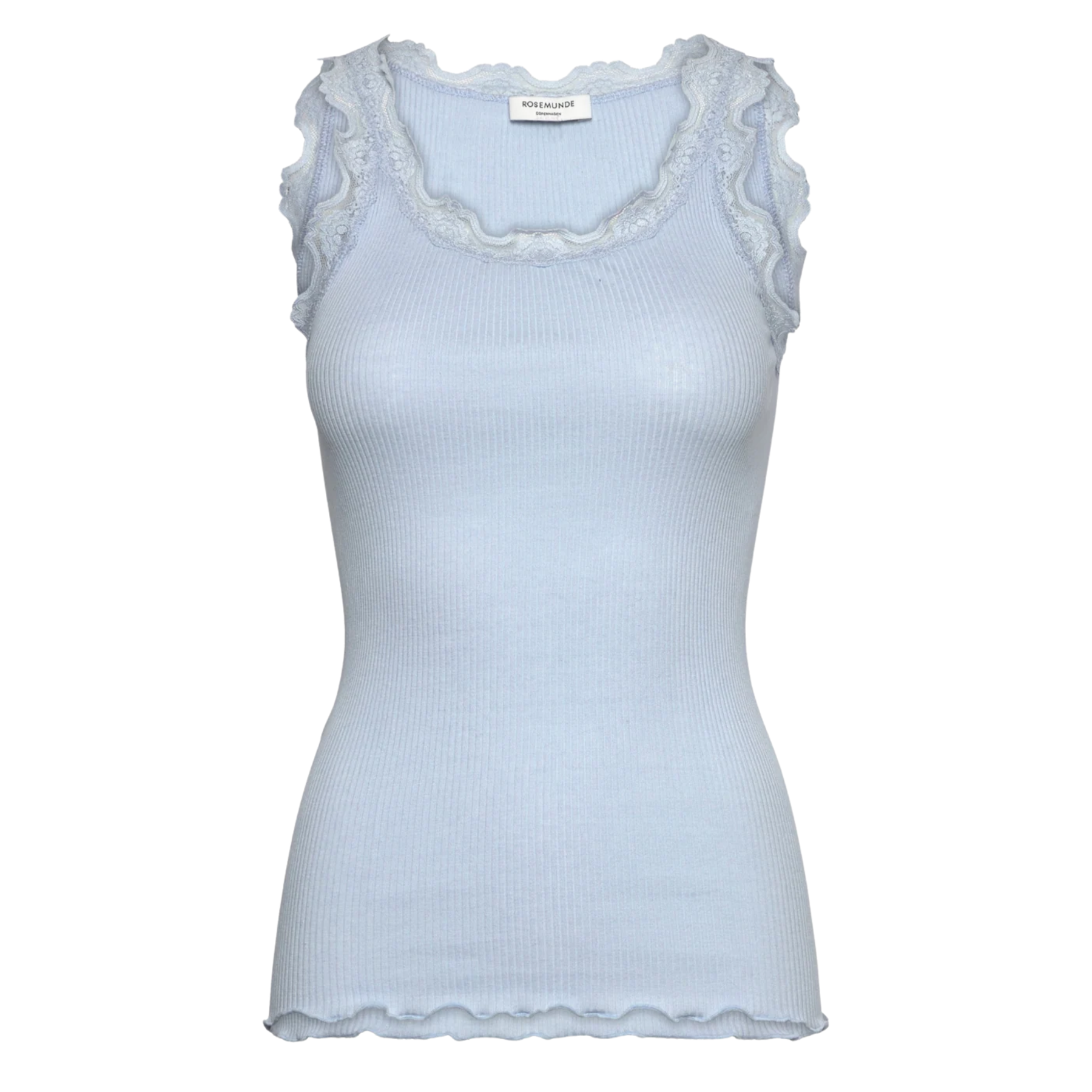 Denne eksklusive silketoppen fra Rosemunde kombinerer tidløs eleganse med feminin finesse. Den runde halsen er vakkert dekorert med delikate blonder, mens den myke rullekanten nederst gir et sofistikert og lett uttrykk. Toppen er laget i en luksuriøs, ribbestrikket silkekvalitet uten sidesømmer, noe som sikrer optimal komfort og en flatterende passform – perfekt både alene og som et elegant lag-på-lag-plagg.