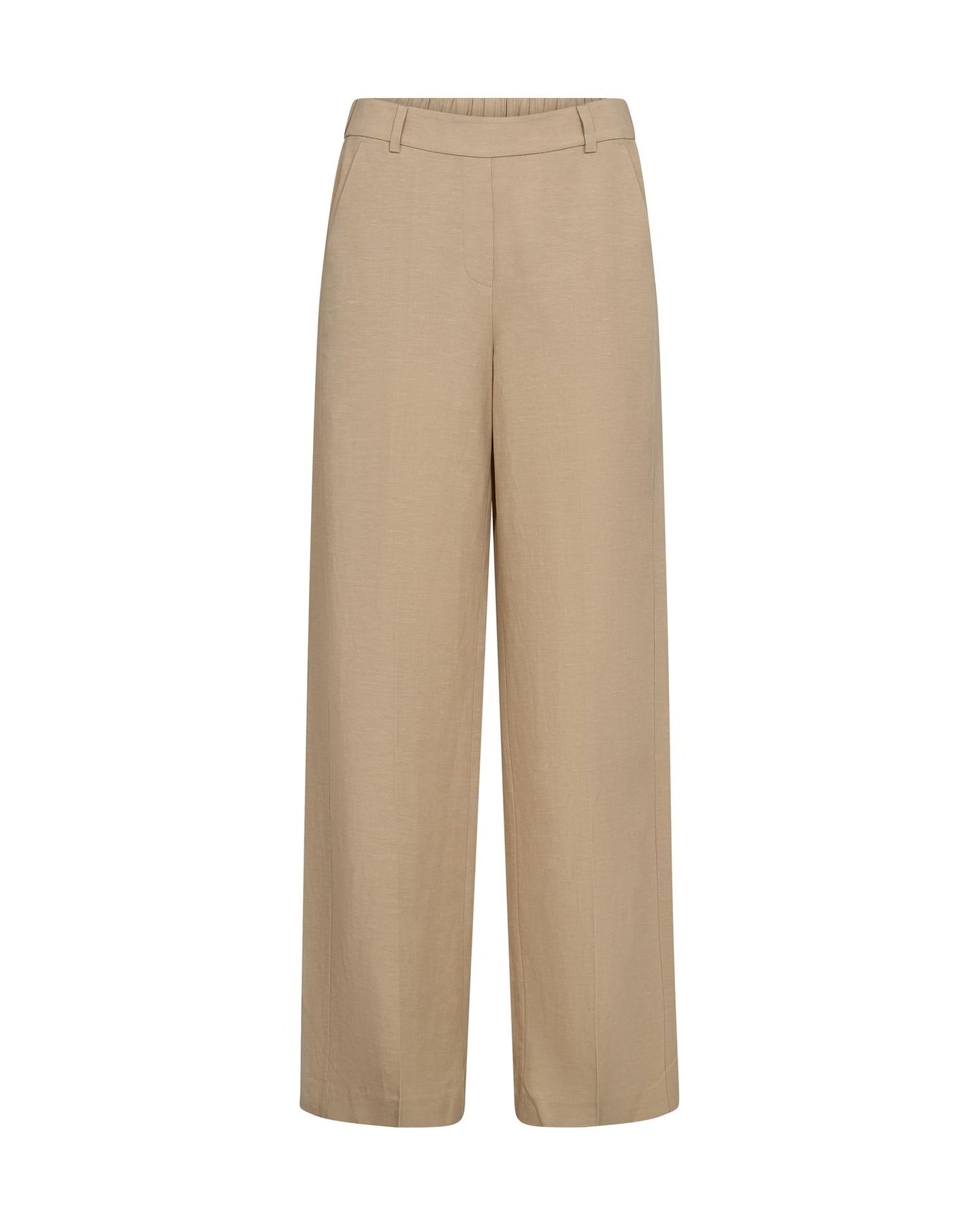 En lett og elegant bukse i en myk blanding av 75% Tencel™ Lyocell og 25% lin, med høyt liv og stretch i midjen for optimal komfort. Buksen har rette ben og praktiske sidelommer, mens baklommene er dekorert med smale stofflister, såkalte paspel-lommer, som gir et ryddig og polert uttrykk.