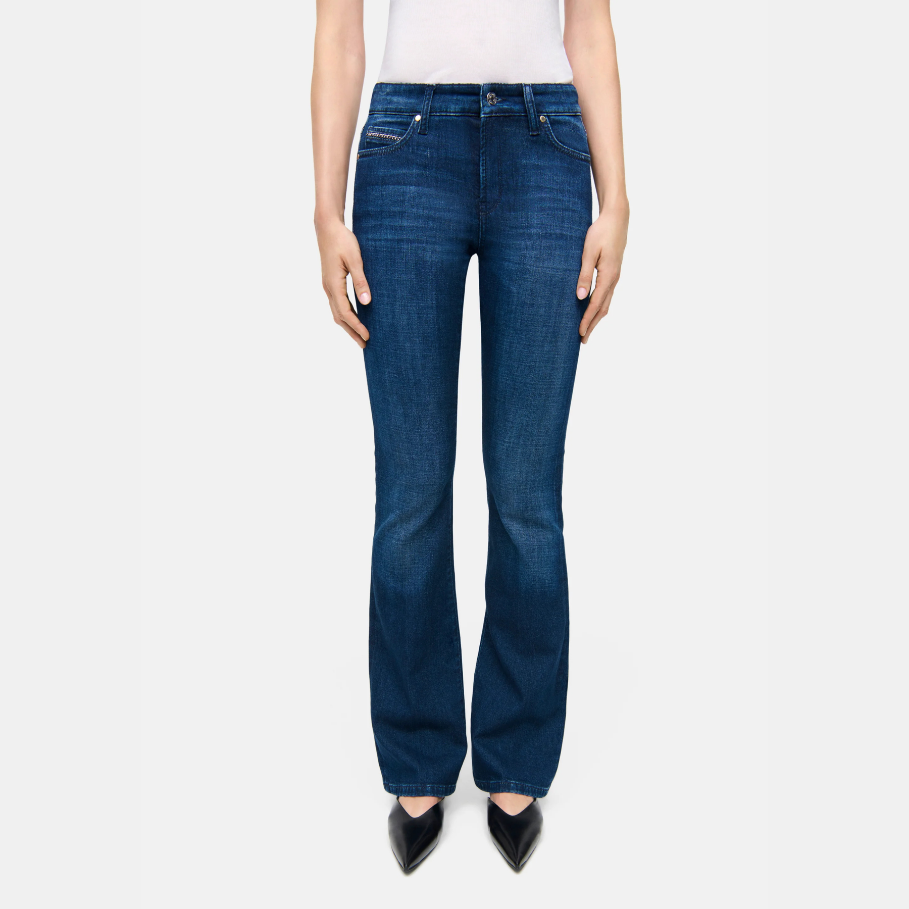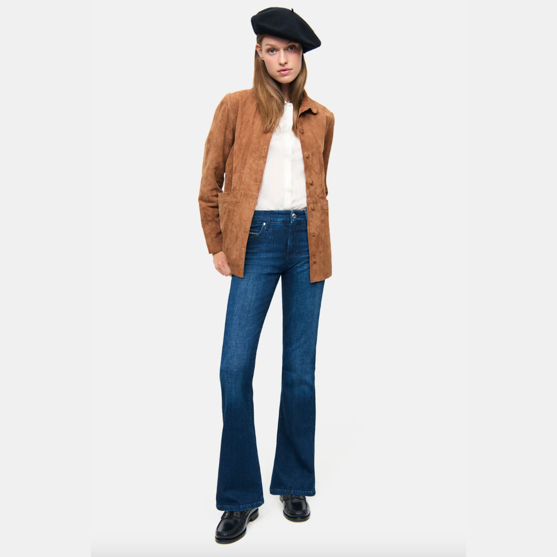 Paris Flared er Cambios klassiske slengbukse. Den er en favoritt for alle som vil ha en elegant, feminin silhuett med et snev av trendy. Laget i myk stretch-denim med medium midje og 33" benlengde, sitter disse jeansene perfekt uten å stramme, samtidig som flaren fra knærne holder seg raffinert og smal. Designet gjør at jeansene fungerer like godt på kontoret som til helgen. Dette er modellen som aldri går av moten - et trygt valg for deg som vil kombinere komfort, stil og kvalitet i én og samme jeans.