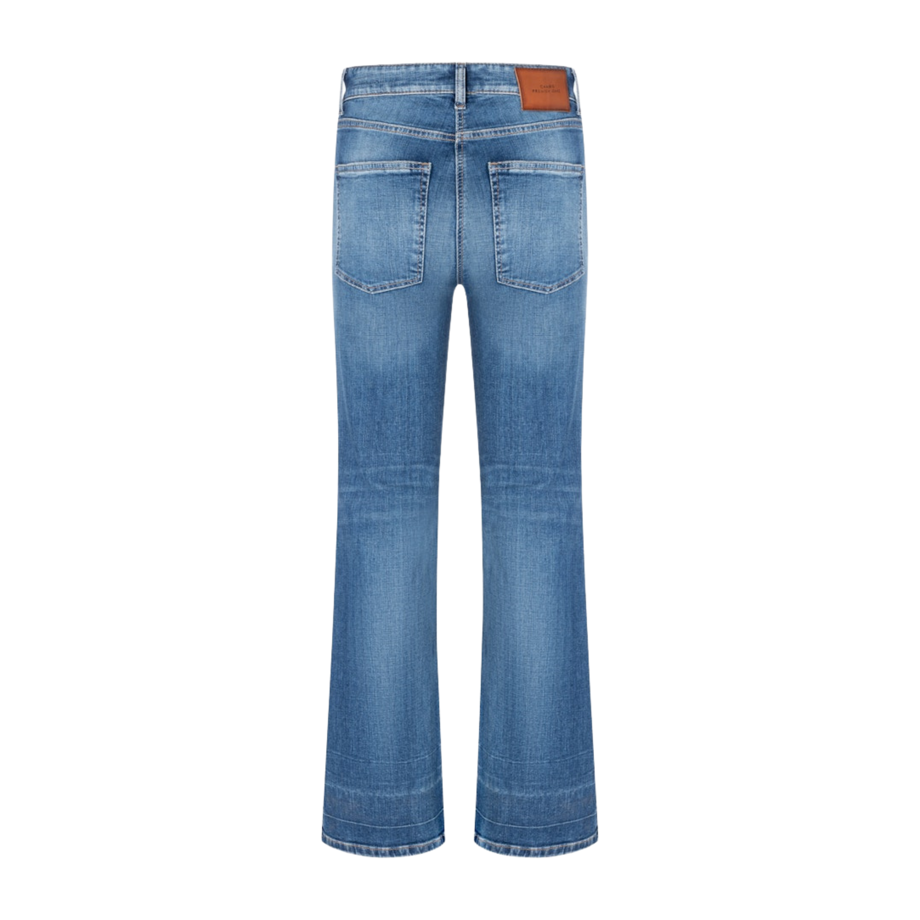Den trendy Fabienne Pocket kombinerer en flared silhuett med moderne destroy-effekter nederst på bena, og gir et urban, avslappet uttrykk. Laget i robust blå denim med 3% elastan, gir den god stretch og komfort gjennom hele dagen. Frontlommer og en diskret metall-detalj på beltehempe tilfører det lille ekstra, som løfter jeansen fra klassisk til særegen. Medium midje og 34" benlengde gjør dette til en statement-jeans som fungerer like godt til hverdags som til mer stilfulle antrekk.