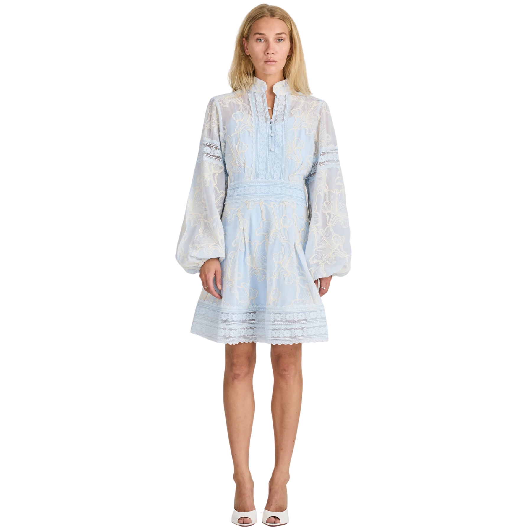 En lett og feminin kjole i en myk blanding av 50% bomull og 50% polyester, med delikate offwhite broderidetaljer som gir et luftig og dekorativt uttrykk. Kjolen har skulpturert midje og mykt volum i ermene som skaper en elegant, flytende silhuett, og et mykt underlag gir behagelig dekning. Perfekt til dagtid alene, eller løft antrekket med hæler for spesielle anledninger.