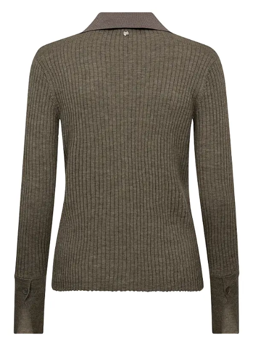 Denne trendy polo-genseren passer inn i enhver garderobe! Den er laget av en ullblanding og har en normal passform i ribbestrikket kvalitet. Genseren har klassisk krage, en stilig V-utringning og flotte flettede strikkedetaljer foran. Vi anbefaler å kombinere den med jeans og chunky boots for en kul look.