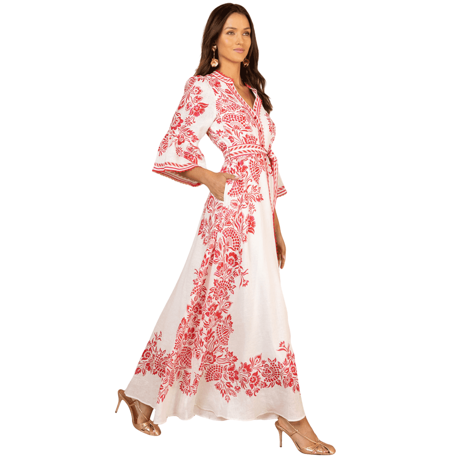 En feminin og luftig maxikjole i vasket lin som kombinerer naturlig eleganse med komfort. Den lette kvaliteten i 100 % lin gir et avslappet, men sofistikert uttrykk – perfekt til både varme sommerdager og mer pyntede anledninger.