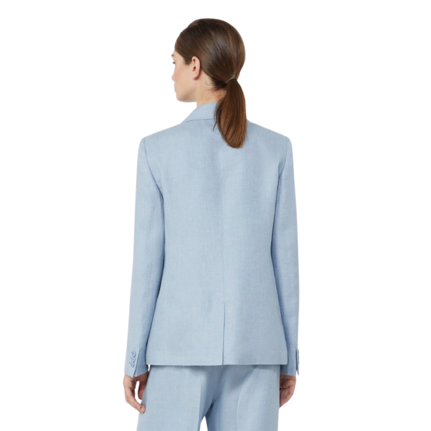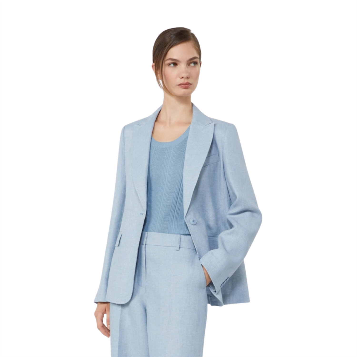 Denne single-breasted blazeren i lin kombinerer et lett og pustende materiale med en elegant, lett innsvingt silhuett. Blazeren har spisse slag og krage, et sentral baksplitt for bevegelsesfrihet, og lange ermer med knapper på mansjettene. Den lukkes med en enkelt knapp foran, og har både brystlomme med kant og frontlommer med klaff. Jakken er delvis foret, noe som gir struktur uten å gå på kompromiss med komforten.