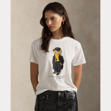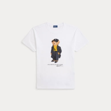 Denne T-skjorten med rund hals er laget av bomullsjersey og er gummitrykt med Polo Bear iført en Ralph Lauren-stil – komplett med en signatur Pony ballcaps.