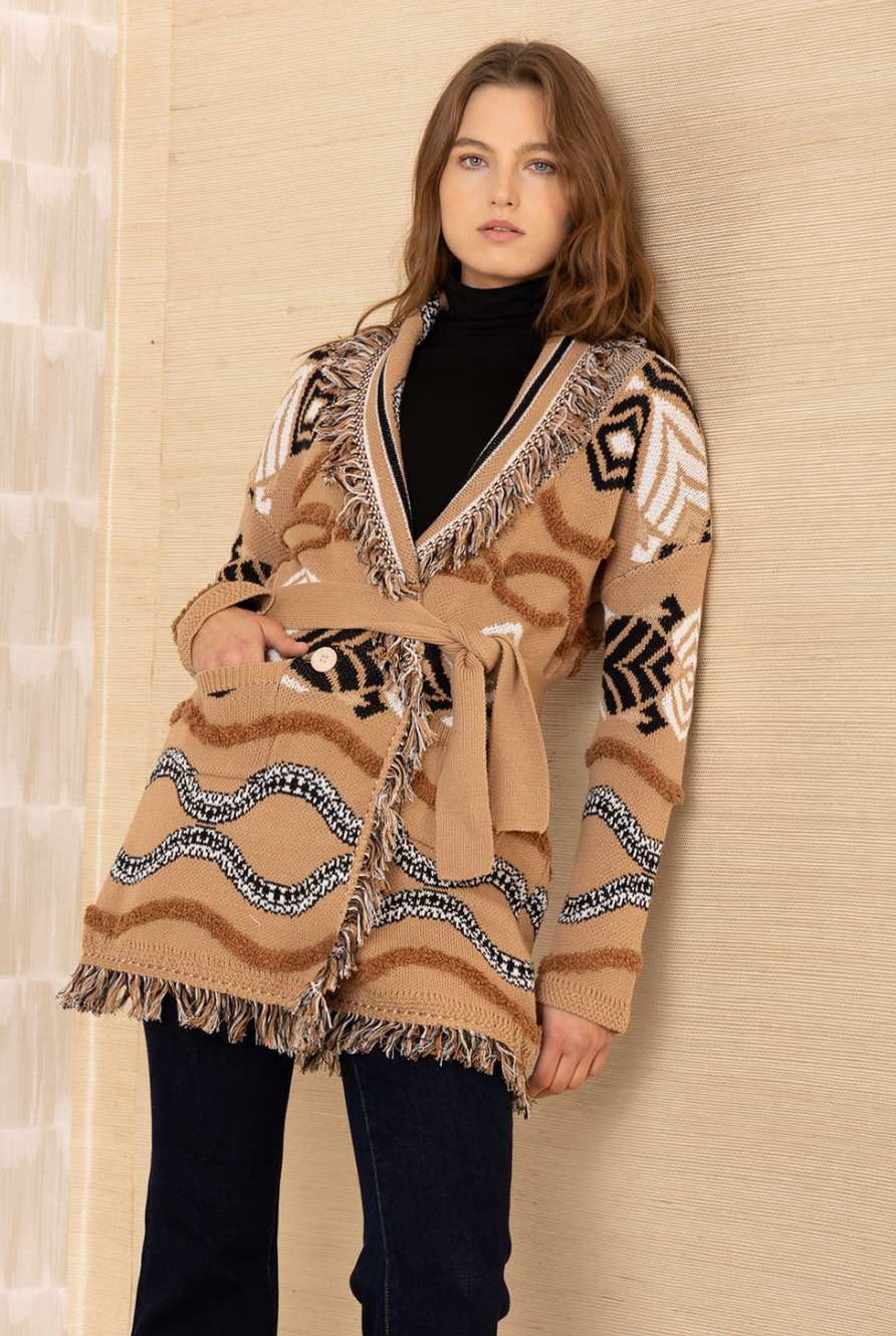 Elegant cardigan i cotton jacquard fra Hale Bob med lav hoftelengde og knappelukking foran for fleksible stylingvalg. Jacquard-teknikken gir stoffet et dekorativt mønster vevd inn i selve stoffet, som skaper tekstur og et sofistikert uttrykk. Praktiske lommer i hoften gjør den både vakker og funksjonell.