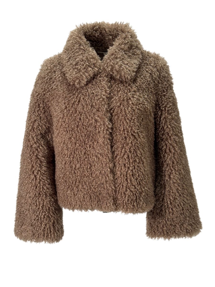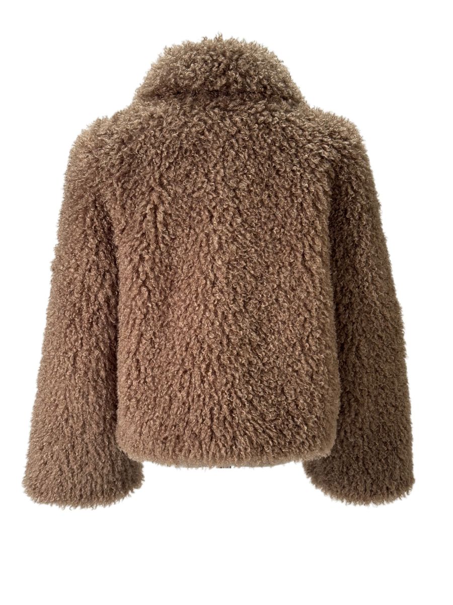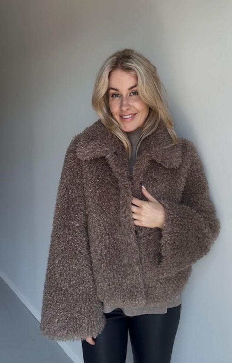 Kort fuskepels i fargen nougat
